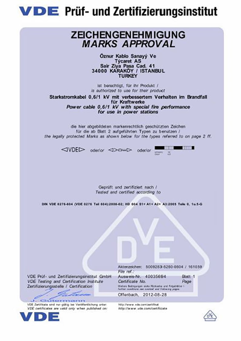 N2XH VDE BELGESİ