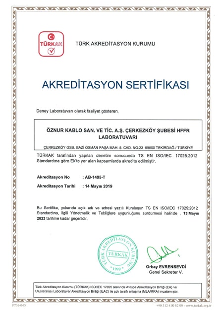 HFFR LABORATUVARI AKREDİTASYON SERTİFİKASI