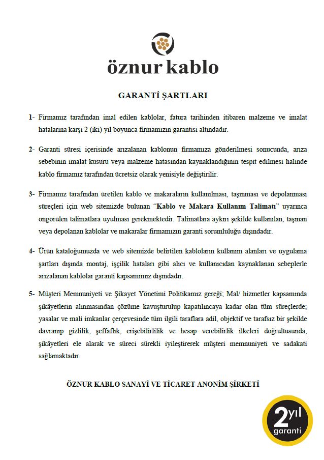 ÖZNUR KABLO GARANTİ BELGESİ